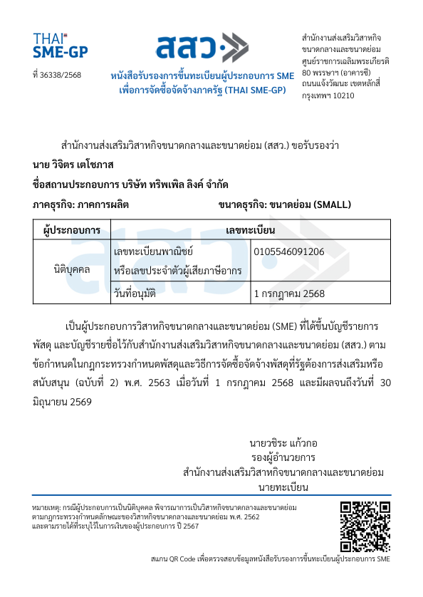 บริษัท ทริพเพิล ลิงค์ จำกัด ได้จดทะเบียนเป็นนิติบุคคลตามกฎหมายแพ่งและพาณิชย์เมื่อวันที่ 4 สิงหาคม 2546 เป็น 1 ในตัวเลือกของงานคุณภาพไม่ว่าจะด้านงานขาย เราขายสินค้าที่ผ่านการพิจารณาแล้วว่าเป็นสินค้าที่มากด้วยคุณภาพ ราคาสุดพิเศษที่ลูกค้าพึงได้รับในแต่ละโปรโมชั่นตลอดทุกไตรมาสของปี ด้านบริการคือสาระสำคัญที่ผู้ให้บริการและผู้รับบริการจะเข้าใจตรงกันคือ "ความพอใจ" เรามั่นใจและภูมิใจที่จะกล่าวว่า ทริพเพิล ลิงค์ บริการดีที่สุด โดยยึดหลักปฏิบัติคือ ไม่เอาเปรียบลูกค้า